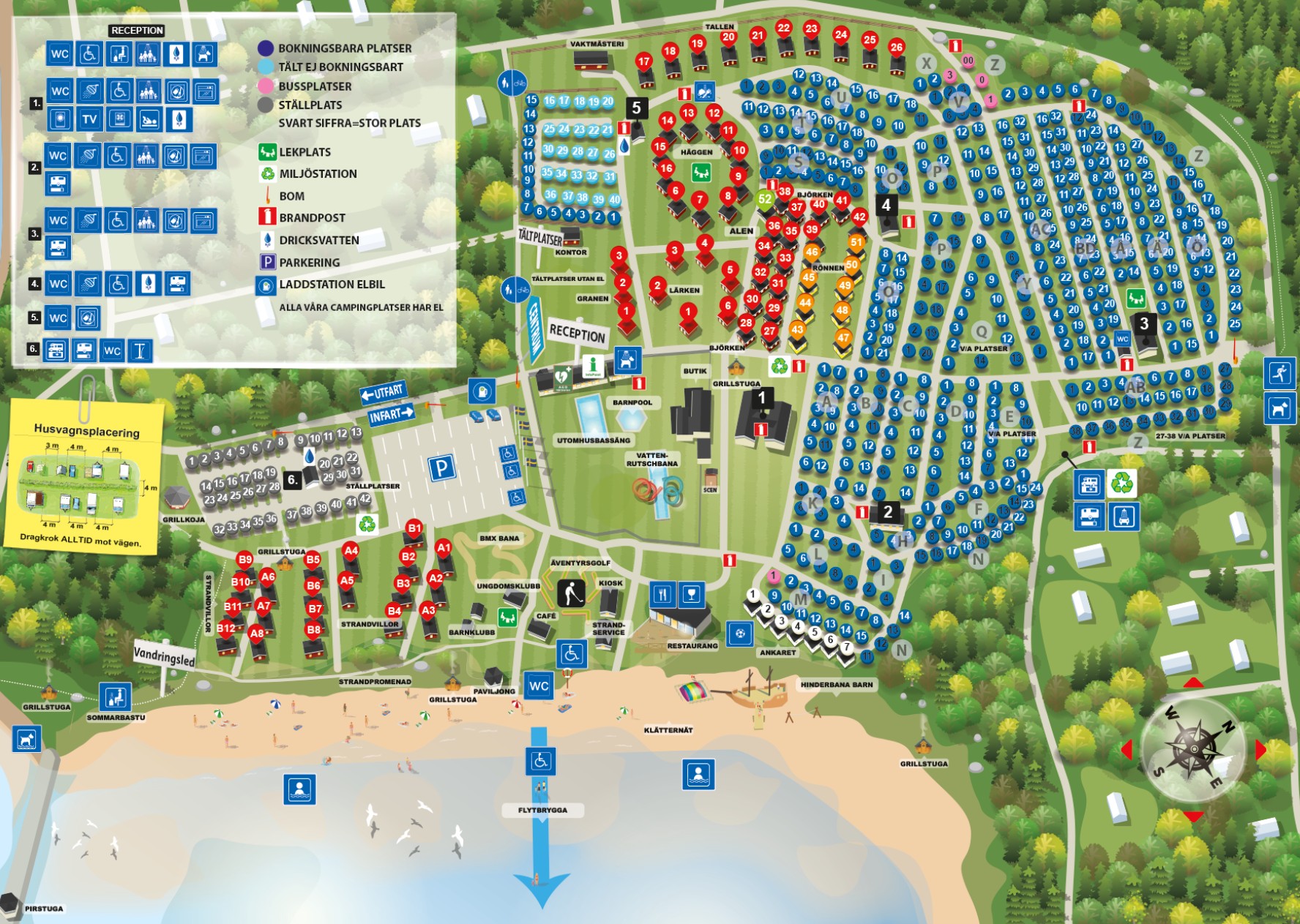 Här nedan kan du se campingkartan över Sonjas camping och stugor